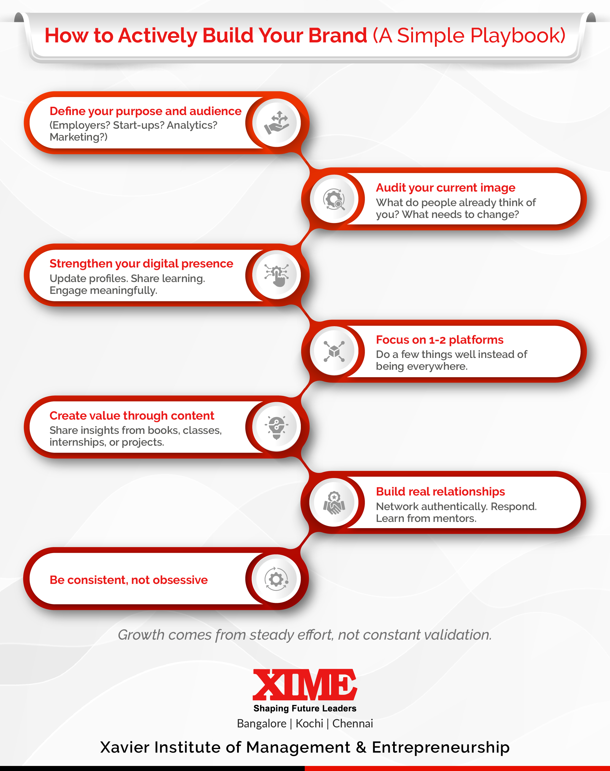 At Xavier Institute of Management & Entrepreneurship, personal branding isn’t taught in isolation - it’s built into the learning experience through: